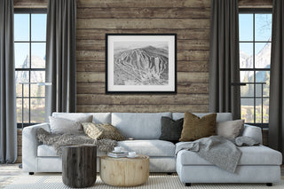The Lake Tahoe region is home to a whole bouquet of ski resorts, each with its own unique terrain and charm. James Niehues captured the magic of Heavenly Mountain in 2003 when he painted this trail map for the resort. While South Lake Tahoe resorts are sometimes overlooked in favor of Palisades and Alpine Meadows on the North end of the lake, anyone who’s visited Heavenly knows it’s a hidden gem. With nearly four thousand vertical feet of skiable terrain and an average of 360” of snowfall a year, Heavenly holds its own in any battle of the ski hills. And beyond the terrain, Heavenly has the lifts and infrastructure to make any skier fall in love. 30 lifts, including everything from magic carpets to a gondola help skiers move around the mountain, and the base area is located right on the lake.