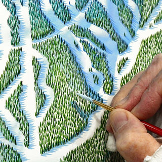 Indulge in owning an unmistakable piece of artistic legacy – an original by Niehues. Each intricate brushstroke is impeccably preserved, embodying the artist's true intent. Spanning from completion to the present, these masterpieces have been safeguarded within Niehues's personal studio. Elevate your home with a one-of-a-kind piece of mountain history.